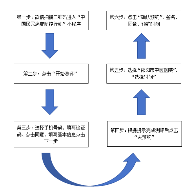 攜帶身份證到就近社區服務中心或者到邵陽市中醫醫院治未病中心掃描二維碼進行登記、填寫問卷調查、評估、預約。