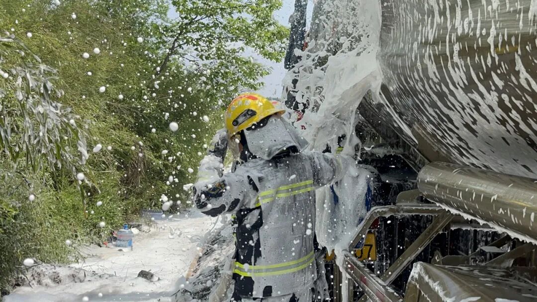 2023年4月19日,邵陽縣五峰鋪鎮屆牌村王家院子一輛34噸油罐車側翻,汽油大量泄露,一名司機受傷被困駕駛室。現場情況汽油大量泄漏,并沿排水溝肆意流淌,空氣中彌漫著刺鼻的汽油蒸汽,可燃氣體測試儀測試汽油蒸汽濃度嚴重超過安全極限,隨時有發生起火爆炸的危險。大隊消防員迅速行動,曲凱作為最先到達現場的消防救援人員,迅速緊張地投入救援工作,救援組利用無火花工具在5分鐘之內成功將駕駛員救出,同時使用泡沫水槍不斷對油罐車及地面流淌汽油噴灑泡沫覆蓋,并對泄露汽油進行堵截和收集,經過16小時艱難奮戰,成功完成了油罐車倒罐和扶正工作,避免了一起可能發生的重大爆炸事故。