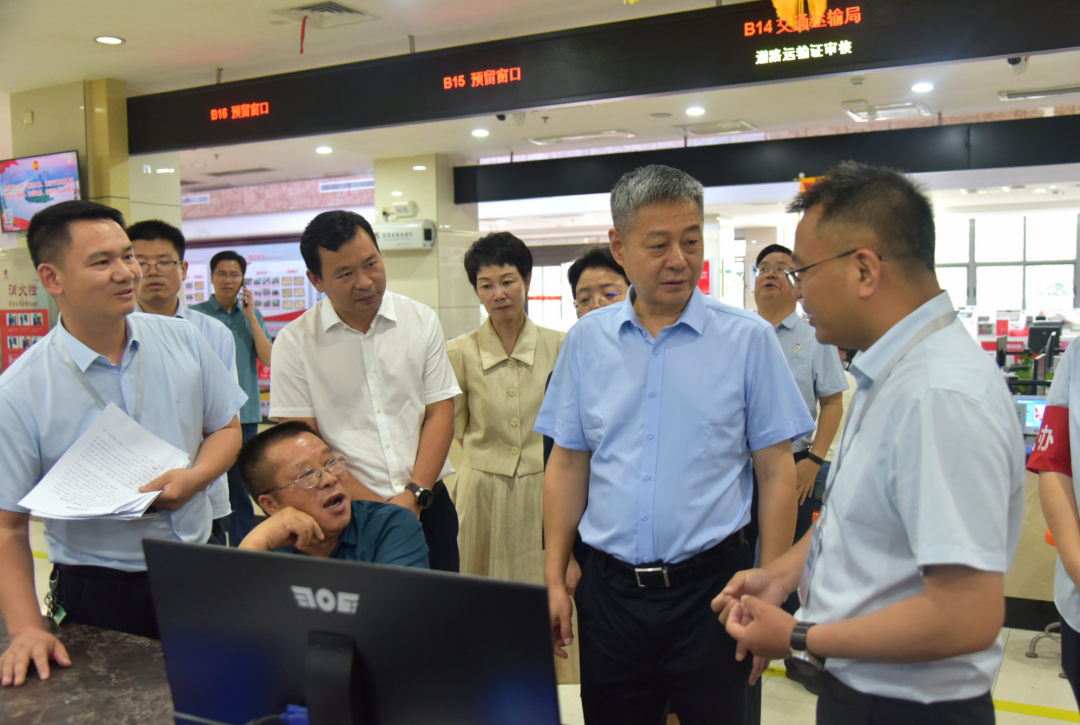嚴(yán)華在市政務(wù)服務(wù)中心了解“高效辦成一件事”和“跨域通辦”工作情況